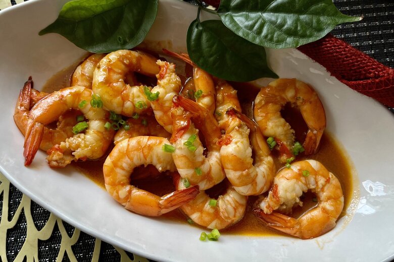 Ốc om chuối đậu có màu vàng đặc trưng của nghệ, thoảng hương dấm bổng cùng với tía tô và lá lốt, có thể ăn bún hay cơm nóng đều ngon lắm.